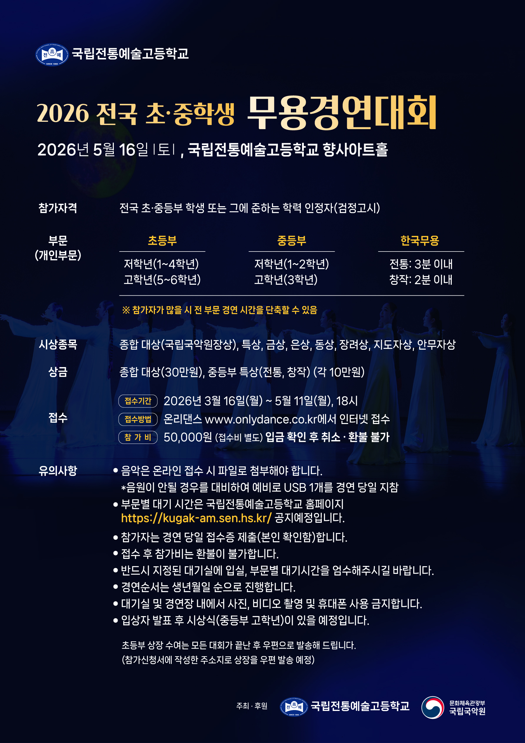 ※ 콩쿨 세부내용과 관련된 문의 / 접수 마감 후의 문의사항 : 국립전통예술고등학교(02-896-1094)